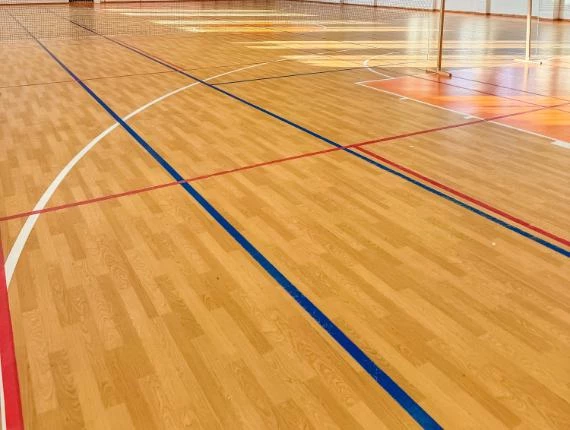 Over time, the surface coating can lose its grip or become scuffed, especially in high-use areas. In most cases, the floor can be sanded down, resealed with a polyurethane finish, and re-marked with fresh sports lines. This extends the lifespan significantly and restores full performance.